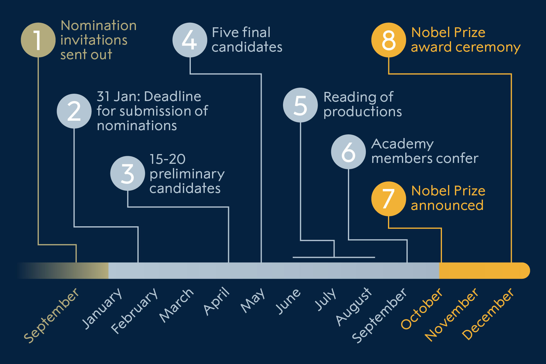 작년 수상자는 미국의 여류 시인인 루이즈 글릭이었는데요, 시인으로서는 11년 토마스 트란스트뢰메르, 16년 밥 딜런 이후 4년 만이 었고 여류 작가로서는 18년 올가 토크르추크 이후 2년만이었죠. 또한 대륙으로 보면 아메리카에서 16년 밥딜런 이후 4년만에 다시 배출되었네요. 반면 아시아권에서는 12년 중국의 모옌 이후로는 아직 나오지 않았습니다. 노벨문학상은 아래 표와 같이, 5명의 후보를 선정한 후, 노벨위원회의 리딩 & 컨퍼런스 기간을 거쳐 최종 수상자를 선정하게 된답니다. 매우 체계적이죠. :D