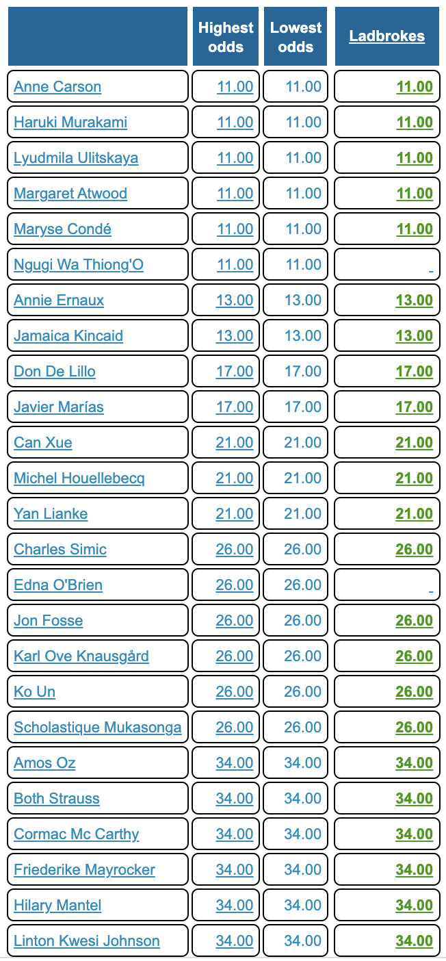 https://www.nicerodds.co.uk/nobel-prize-in-literature